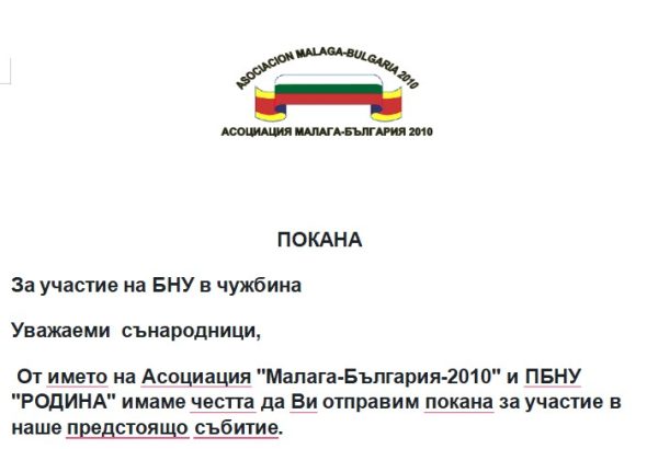 Асоциация “Малага-България 2010” ежегодно провежда Културен фестивал ''Български дни в Малага''. Тази година те ще се проведат...